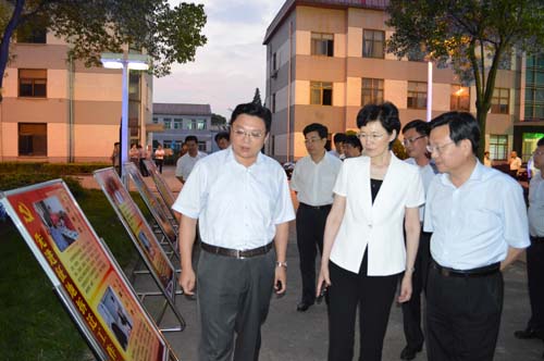 頒獎典禮開始之前,市領導錢娟、劉榮華、孫群仔細觀看了各類先進典型的事跡展板,了解了他們在服務發展過程中的感人故事。