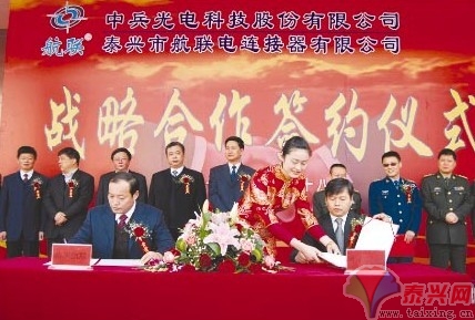 3月28日上午,市航聯(lián)電連接器有限公司與中兵光電股份有限公司簽署戰(zhàn)略合作協(xié)議,航聯(lián)將通過掛靠上市公司,加快發(fā)展步伐。 市領(lǐng)導(dǎo)張兆江、孫云、王中先、楊晉安、吳斌、薛晨光,中兵光電股份有限公司董事長李保平,以及部分軍隊代表參加了簽約儀式。 中兵光電科技股份有限公司是中國兵器集團(tuán)重點保軍企業(yè),以“信息化與精確打擊”為核心業(yè)務(wù),是中國兵器集團(tuán)發(fā)展最快的上市公司,目前市值超百億元。航聯(lián)電連接器有限公司是我市一家民營成長型企業(yè),主產(chǎn)品電連接器通過了部隊質(zhì)量體系認(rèn)證,在軍品市場得到廣泛應(yīng)用。這次戰(zhàn)略合作,中兵光電股份有限公司注資購買航聯(lián)51%的股份,同時,雙方將在資金、管理、產(chǎn)品技術(shù)和新項目上開展深度合作,合力將航聯(lián)電連接器迅速做大做強(qiáng),并將謀求向兵器行業(yè)其它產(chǎn)品擴(kuò)張。中兵光電股份有限公司董事長李保平表示,簽約后,中兵光電將繼續(xù)加大資金投入和項目開發(fā)力度,力求將航聯(lián)建設(shè)成為中兵光電在泰興較大規(guī)模的生產(chǎn)基地。 市委書記張兆江在致辭中說,這一次的成功合作,中兵光電大型軍企品牌的影響力,將對航聯(lián)今后的發(fā)展壯大產(chǎn)生帶動力。希望雙方積極創(chuàng)新合作模式、拓寬合作領(lǐng)域,讓航聯(lián)通過借船出海,走上技術(shù)高端化、生產(chǎn)集約化、管理現(xiàn)代化的發(fā)展之路,努力成為國內(nèi)外電連接行業(yè)中最具影響力的優(yōu)秀企業(yè)。泰興市委、市政府及相關(guān)部門將盡力提供更大的支持和更優(yōu)的服務(wù),使雙方的合作之路越走越寬,實現(xiàn)互利雙贏。 |