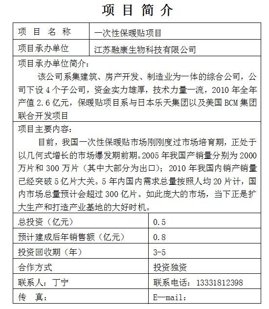 一次性保暖貼項目