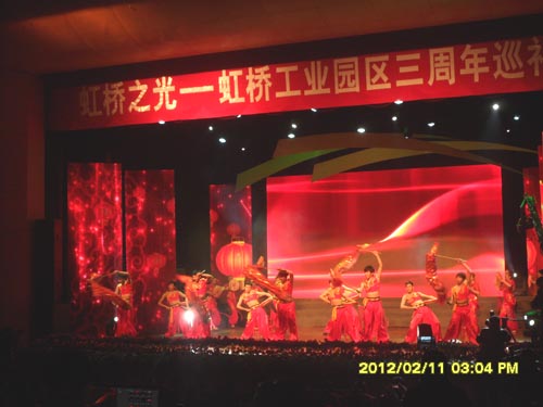 2月11日下午,《虹橋之光》文藝演出在市影視娛樂城精彩上演,通過豐富多彩的節目充分展示了虹橋工業園區三年發展取得的成就。 演出由央視著名節目主持人張宇、管彤主持。 演出在開場舞《龍吟鼓舞》中拉開序幕。配樂詩朗誦《母親的虹橋》講述了一個普通母親從不舍家園、到理解帶頭拆遷,最終支持新城建設和園區發展的感人故事。