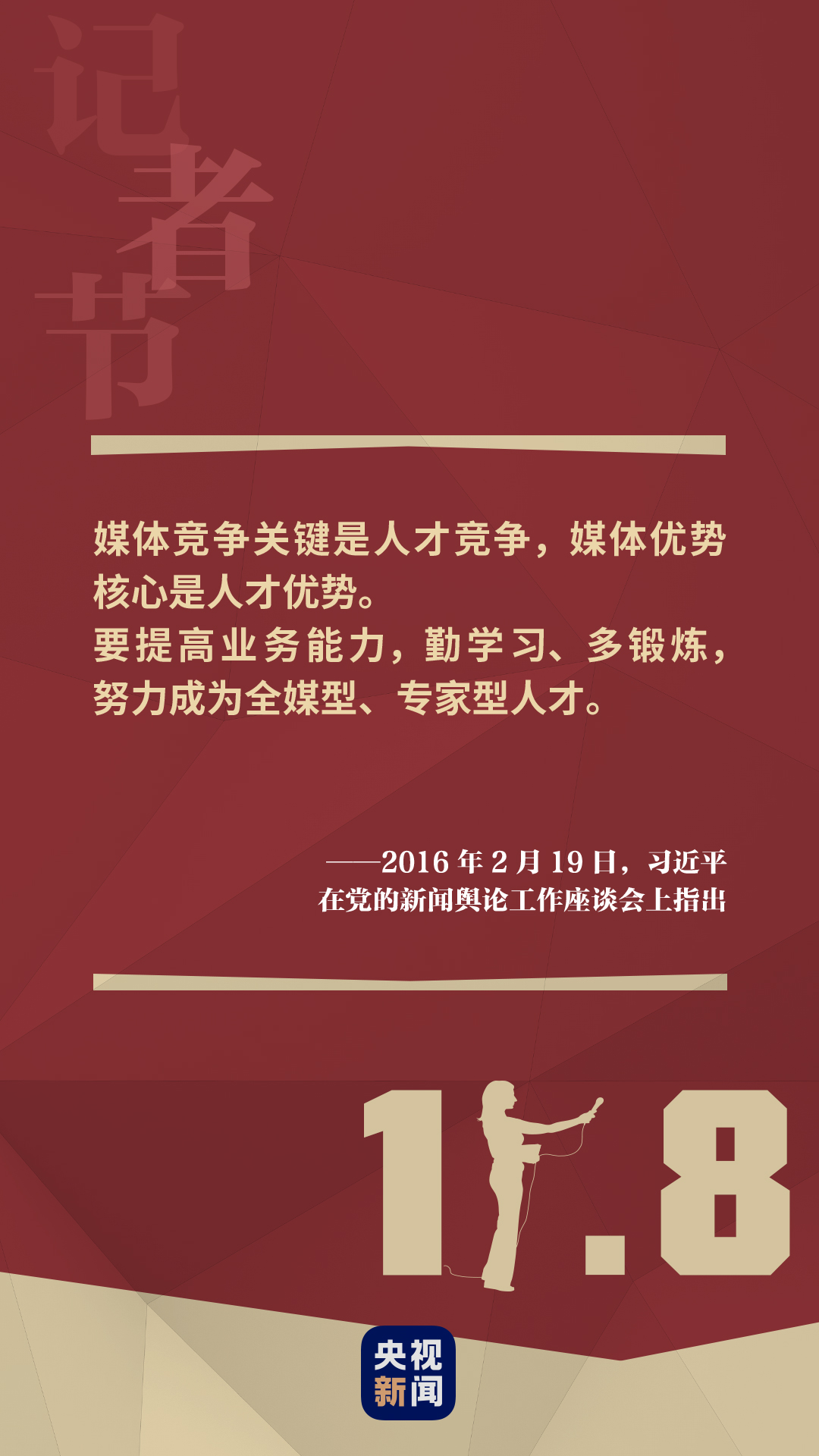 11月8日,第21個中國記者節(jié)。 注定不平凡的2020年,讓這個記者節(jié)顯得格外不同。在驚心動魄的戰(zhàn)“疫”一線,在決戰(zhàn)脫貧攻堅戰(zhàn)場,在奮進新時代、開啟新征程的各個領域,百萬新聞工作者記錄著奮發(fā)昂揚的中國不平凡的步伐。 “希望新聞工作者發(fā)揚優(yōu)良作風,撲下身子、沉下心來,扎根基層”;宣傳輿論工作要“更好強信心、暖人心、聚民心”;“要不斷增強腳力、眼力、腦力、筆力”…… 一直以來,習近平總書記十分關心新聞工作者,并提出了許多殷切希望。 “做黨的政策主張的傳播者、時代風云的記錄者、社會進步的推動者、公平正義的守望者。”廣大新聞工作者牢記習近平總書記的囑托,守正創(chuàng)新,用心、用情向你我講述一個又一個身邊的故事、精彩的中國故事。