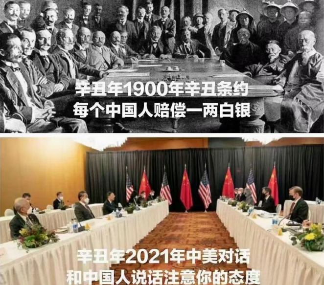 近日,朋友圈被兩張談判桌的對比圖刷屏,一張是辛丑1900年清政府被迫簽訂《辛丑條約》的談判現(xiàn)場,一張是辛丑2021年中美高層戰(zhàn)略對話現(xiàn)場。一百二十年滄桑巨變,從任人宰割的羸弱到據(jù)理力爭的魄力,中國人的底氣來自哪里?
