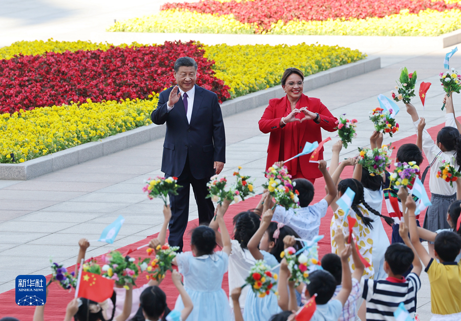 6月12日下午,國家主席習近平在北京人民大會堂同來華進行國事訪問的洪都拉斯總統(tǒng)卡斯特羅舉行會談。這是會談前,習近平在人民大會堂東門外廣場為卡斯特羅舉行歡迎儀式。新華社記者 黃敬文 攝