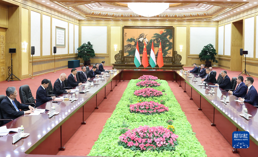 10月17日上午,國家主席習(xí)近平在北京人民大會堂會見來華出席第三屆“一帶一路”國際合作高峰論壇的匈牙利總理歐爾班。新華社記者 王曄 攝 歐爾班表示,在習(xí)近平主席親自關(guān)心和支持下,匈中關(guān)系近年來保持良好發(fā)展,取得豐碩成果,中國企業(yè)的投資與合作,包括匈塞鐵路建設(shè),顯著促進了匈牙利經(jīng)濟社會發(fā)展。匈方深信,習(xí)近平主席提出的“一帶一路”倡議將給世界帶來重大改變,有利于促進世界經(jīng)濟發(fā)展,給各國人民帶來更多福祉,匈方堅定支持并將繼續(xù)積極參與。當(dāng)前復(fù)雜形勢下,匈牙利致力于深化匈中友好合作關(guān)系的決心堅定不移,將繼續(xù)做中國在歐盟可以信任的朋友和伙伴。匈方反對任何脫鉤斷鏈和所謂“去風(fēng)險”的做法,愿同中方一道加強經(jīng)貿(mào)投資、互聯(lián)互通等領(lǐng)域合作,深化人文交流。匈方將繼續(xù)積極促進中東歐國家同中國合作,推動歐中關(guān)系健康穩(wěn)定發(fā)展。 蔡奇、王毅參加會見。 |