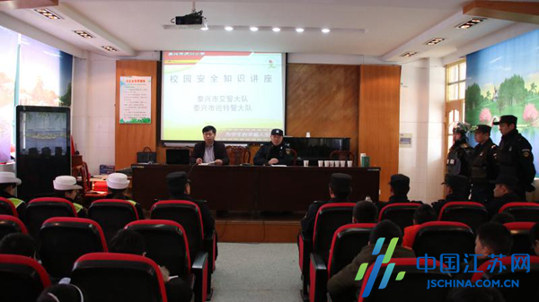 中國江蘇網3月6日泰州訊(陳波 楊美玲)開學首周,2月28日下午,泰興市交警大隊和巡特警大隊齊聚濟川小學,為師生們帶來了一場實用高效的校園安全教育。