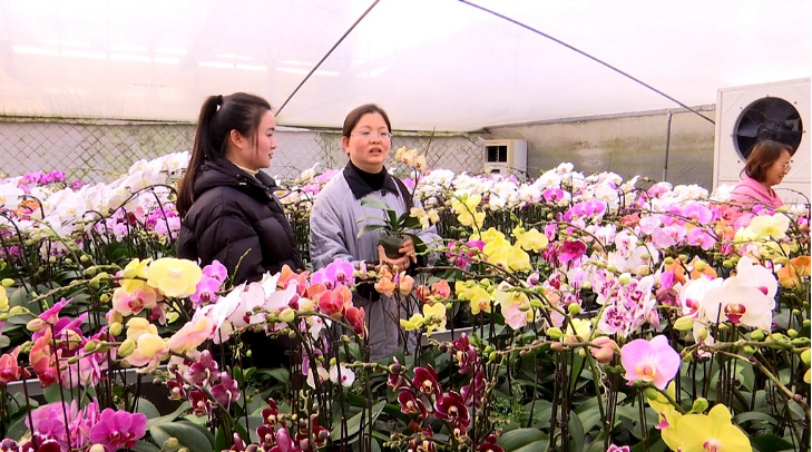 2024年12月21日上午,泰興市河失鎮(zhèn)綠地苗木市場的蘭泰花卉種植基地內(nèi),蝴蝶蘭生長旺盛,姿態(tài)優(yōu)雅。盛開的花朵宛如翩翩起舞的蝴蝶,在枝頭嬉戲。市民郭嬌艷是這里的常客,她表示:“我們經(jīng)常來這里選購蝴蝶蘭,擺放在家中既美觀又有觀賞價值,作為禮物送給親朋好友也非常合適。” 蝴蝶蘭因其花瓣酷似停留在花莖上的藍色蝴蝶而得名,被譽為“洋蘭皇后”。隨著品種的雜交和演變,蝴蝶蘭的色彩變得更加豐富,紅、紫、藍、黃等色彩斑斕。目前蝴蝶蘭的品種已超過600種,滿足了消費者多樣化的家居種植需求。花藝師張慧介紹:“我手中的這盆花名為‘光芒’,因其花瓣如光芒般四射而得名。扦插時,由于花頭會延伸得很長,需要用鐵絲支撐,以起到襯托的作用。裝盆時,花朵平面朝向我們,以保持美觀。”