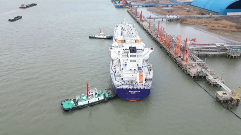 1月9日下午,2025年首艘5萬GT乙烷運輸船——英力士“龍”型LNG多用途液化氣運輸——英刀士“刀船“INEOSMARLIN”輪順利靠泊我市新浦化工碼頭。該輪船長231.57米,寬36.6米,載重噸高達51312.5噸,擁有四個C型獨立貨艙,是全球乙烷運輸領(lǐng)域的“王者”。