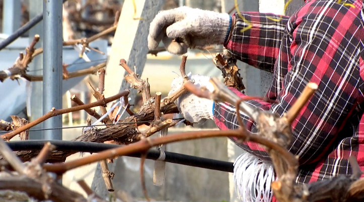 果園業(yè)主陶偉介紹,修剪是為了讓葡萄來(lái)年能長(zhǎng)出花果,“不修剪,明年就不長(zhǎng)果,沒(méi)花就沒(méi)果。要剪掉今年的結(jié)果枝,讓新芽明年長(zhǎng)出新果。”整枝后的葡萄樹(shù)雖光禿禿的,比原先“瘦”了一半多,卻是在為來(lái)年碩果滿(mǎn)枝頭蓄積能量。除了去老枝,還要留好芽,“留一個(gè)芽,讓底下的芽充分利用,底下的芽明年就是結(jié)果的,比較健壯一點(diǎn)。”陶偉說(shuō)。十一月中旬葡萄銷(xiāo)售結(jié)束后,十二月下旬葉子逐漸掉落,氣溫降至零度左右,葡萄進(jìn)入冬眠及田間管理關(guān)鍵期。“樹(shù)長(zhǎng)了一年缺肥,必須施冬肥,為明年發(fā)芽分化結(jié)果提供營(yíng)養(yǎng)。冬肥主要是補(bǔ)充氮磷鉀及微量元素,以有機(jī)肥為主,每畝用量一般在2噸以上,我們用的都是發(fā)酵好的有機(jī)肥。”陶偉介紹。