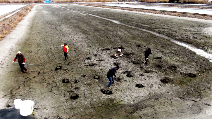 與此同時(shí),位于根思鄉(xiāng)老葉村的正濤螃蟹養(yǎng)殖專(zhuān)業(yè)合作社也忙得不可開(kāi)交。合作社理事長(zhǎng)許正濤說(shuō),養(yǎng)殖一年后,年底要放干水,曬塘消毒氧化,“曬到塘底裂縫達(dá)兩公分寬時(shí),進(jìn)行消毒。消毒是用石灰化水潑澆,讓池塘酸堿度達(dá)十一點(diǎn)幾,殺掉底部病原體和蟲(chóng)卵。”兩個(gè)多月的“凈身”能讓蟹塘煥發(fā)新生。此外,水草也已進(jìn)入蟹塘栽植,“養(yǎng)螃蟹全靠水草,一塘好水,一塘好草,養(yǎng)一塘好蟹。消毒、栽草做好后,就等過(guò)年放蟹了。”許正濤躊躇滿(mǎn)志。