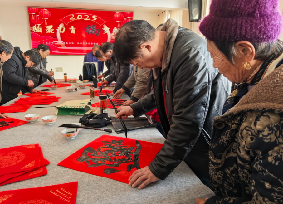 翰墨書香,妙筆丹青激活力 1月15日,根思鄉(xiāng)開展“翰墨書香 福賀新年”書法家送春聯(lián)活動,為群眾寫對聯(lián)、送福字。活動現(xiàn)場,紅聯(lián)獻瑞,墨香四溢。“其德不端則弊作顯,其行不廉則禍必生”“行穩(wěn)致遠”“歲物豐成”等書法作品讓家國情懷更具象化,“福”字和春聯(lián)把年味暈染得更濃。“紅紅火火的手寫春聯(lián)雖然沒有印刷品精致,但是看著更有年味!”雙港村村民匡成千說。