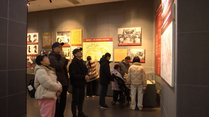 春節(jié)假期,在位于江蘇省泰州市泰興市的新四軍黃橋戰(zhàn)役紀(jì)念館,游客們凝視著一張張記錄著革命歷程的照片,仿佛穿越回了那段烽火連天的歲月。靖江人陳曉群在上海打拼多年,成立了自己的公司,早在春節(jié)前,他便把新四軍黃橋戰(zhàn)役紀(jì)念館定為首個打卡地。“我小時候生活比較苦,那時打仗更苦,很不容易,所以我要讓孩子們都過來看看,幸福來之不易。”