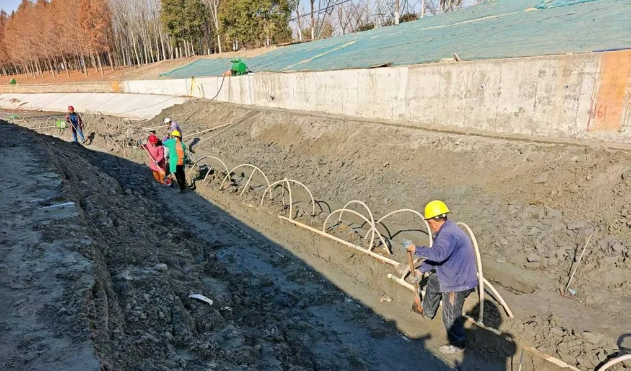 在占戰(zhàn)備河貫通(桑不人、外八工湖)項(xiàng)目現(xiàn)場(chǎng),新建泵站已完成主體結(jié)構(gòu)施工以及閘門、雙向引排泵安裝。新開(kāi)挖河段也已完成擋墻澆筑,施工人員正在進(jìn)行河床混凝士護(hù)坡地工。該項(xiàng)目是我市2024牛清水雙里點(diǎn)工程,全長(zhǎng)約31O米,具十TT2道約158米,將戰(zhàn)備河與東郊人工湖實(shí)現(xiàn)貫通。同時(shí)新建泵站一座,人行橋兩座,并實(shí)施河道綠化等附屬工程。 下—步,將重點(diǎn)做好混凝護(hù)收地工、綠化工程施工、箱變的安裝,爭(zhēng)取在3月底完成整個(gè)工程。