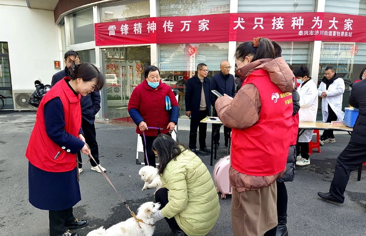 泰興市畜牧獸醫(yī)中心黨支部從源頭開(kāi)展文明養(yǎng)犬宣傳和志愿服務(wù)活動(dòng),組織黨員志愿者前往濟(jì)川街道興燕社區(qū),開(kāi)展“雷鋒精神傳萬(wàn)家,犬只接種為大家”志愿服務(wù)活動(dòng)。通過(guò)發(fā)放狂犬病防控宣傳頁(yè),科普狂犬病等重要人畜共患病防控知識(shí),宣傳《中華人民共和國(guó)動(dòng)物防疫法》相關(guān)規(guī)定,倡導(dǎo)依法養(yǎng)犬、文明養(yǎng)犬。活動(dòng)現(xiàn)場(chǎng),工作人員為犬只注射狂犬疫苗并進(jìn)行免疫登記,筑牢犬只免疫屏障,提升市民文明養(yǎng)犬意識(shí)。