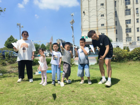 分區(qū)劃點(diǎn)講新知,戶外運(yùn)動(dòng)綻活力 在當(dāng)?shù)卣臀闯赡耆岁P(guān)愛協(xié)會(huì)的共同支持下,實(shí)踐團(tuán)于暑期赴泰興市的濟(jì)川街道北站社區(qū)、清水村、開綠村、騰興村和星光公益咖吧以及常熟市的琴南社區(qū)、錦荷社區(qū)、府東村、昆承村開展支教。7月7日實(shí)踐團(tuán)成員們進(jìn)行了開班儀式的宣講,主要形式為團(tuán)隊(duì)的發(fā)展歷程、開設(shè)課程以及隊(duì)員介紹。 暫別教室的四四方方,去擁抱風(fēng)的方向。最好的教室永遠(yuǎn)是戶外,擁抱自然沐浴陽(yáng)光不僅能放松心情,還能讓心靈得到安撫。戶外運(yùn)動(dòng)課上,各個(gè)點(diǎn)位的成員帶著孩子們腳步踏過草地,指尖沾染上陽(yáng)光的溫度,呼吸間滿是草木的清新,汗水滴落的聲音與歡笑撞個(gè)滿懷。每一次奔跑、跳躍、探索,都是身體與自然的對(duì)話,是勇氣和成長(zhǎng)的證明。