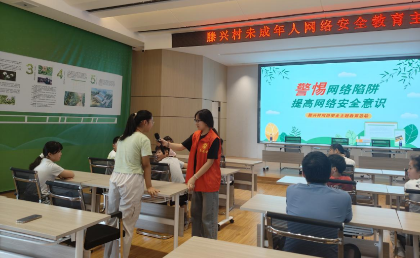 寓教于樂,解鎖“健康上網(wǎng)”新密碼。在開綠村活動現(xiàn)場,志愿者覃義媛以“小朋友們,收到陌生人發(fā)的游戲皮膚鏈接,該怎么辦?”這樣一個貼近生活的問題開啟了互動課堂,瞬間點燃了孩子們討論的熱情。志愿者們通過現(xiàn)場授課、互動問答和視頻演示,緊密結(jié)合未成年人的心理特點與日常用網(wǎng)習(xí)慣,深入淺出地引導(dǎo)未成年人自覺防范網(wǎng)絡(luò)詐騙陷阱、保護個人信息安全、科學(xué)規(guī)劃上網(wǎng)時間與游戲時長,培養(yǎng)文明自律的上網(wǎng)習(xí)慣。
