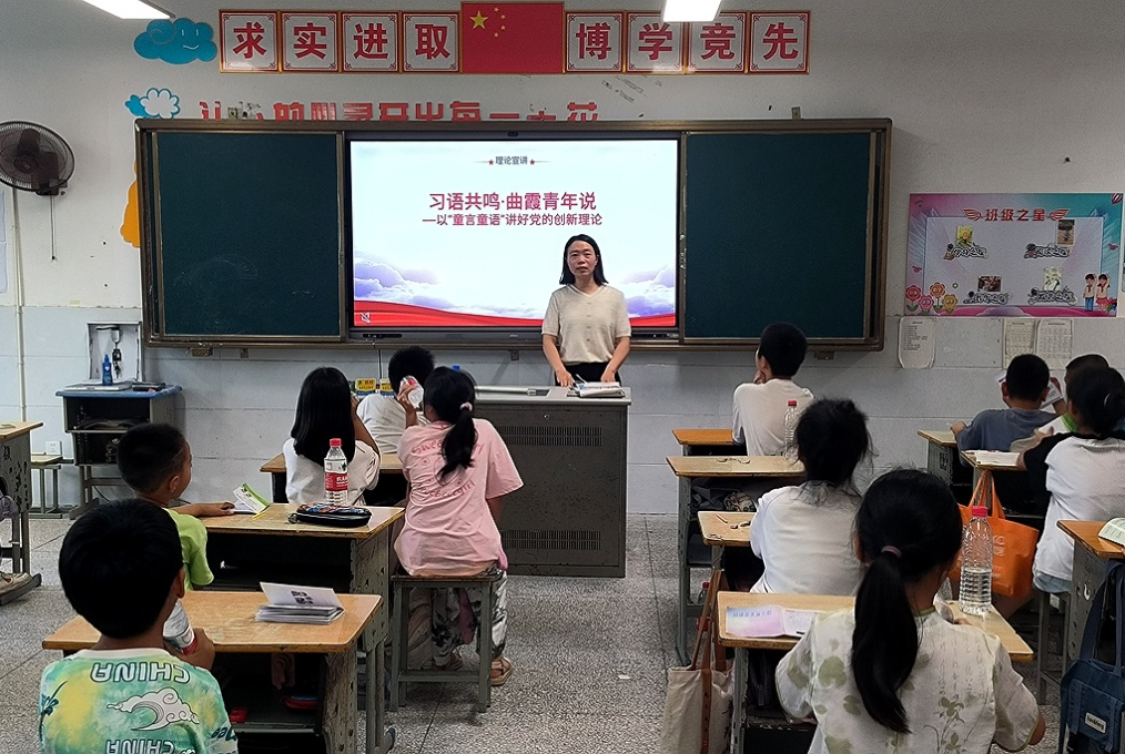 童言童語傳黨音。“同學(xué)們知道什么是‘共同富裕’嗎?就像跳繩比賽,跳得快的同學(xué)帶著跳得慢的一起練……”7月22日,張橋鎮(zhèn)中心小學(xué)暑托班的“習(xí)語共鳴·曲霞青年說”課堂上,90后宣講員張俊用孩子們熟悉的例子講解理論概念,孩子們頻頻舉手互動(dòng)。“我們堅(jiān)持‘少年兒童在哪里,宣講就覆蓋到哪里;少年兒童喜歡什么,宣講就創(chuàng)新什么’的原則,用動(dòng)畫、順口溜把理論翻譯成‘童言童語’,讓孩子們?cè)诳鞓分袑W(xué)習(xí)。”曲霞鎮(zhèn)黨委宣傳委員周奕欣介紹。
