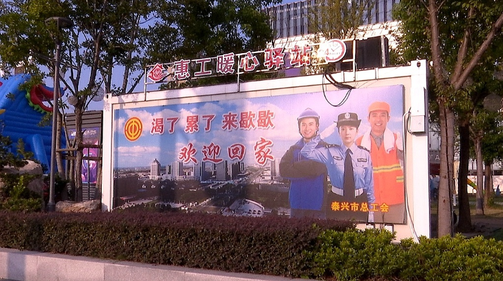 2020年,泰興市聚焦“八大群體”建會(huì)建家,組建“泰興市快遞(送餐)行業(yè)工會(huì)聯(lián)合會(huì)”,實(shí)施“圓夢(mèng)筑家”六大行動(dòng),打造“快遞(送餐)小哥服務(wù)+樣板區(qū)”。在美團(tuán)、順豐等企業(yè)新建3家職工小家,聯(lián)合美好、星地等超市共建8家“快遞小哥驛站”,泰興市總工會(huì)與泰興市公安局交通警察大隊(duì)聯(lián)合召開(kāi)“快遞小哥一路通暢”座談會(huì),解決停車(chē)難等難題,設(shè)立12個(gè)臨時(shí)停車(chē)點(diǎn),把城區(qū)900余名快遞(外賣(mài))小哥納入服務(wù)范圍。 2021年,文江路垃圾中轉(zhuǎn)站、四牌樓垃圾中轉(zhuǎn)站等4個(gè)“城市勞動(dòng)者港灣”相繼啟用。“城市勞動(dòng)者港灣”由泰興市總工會(huì)與泰興市城管局共建,是環(huán)衛(wèi)工人等戶(hù)外勞動(dòng)者的“歇腳地”,內(nèi)配桌椅、空調(diào)、冰箱、微波爐、擦鞋機(jī)、雨傘雨衣、應(yīng)急藥箱等,實(shí)現(xiàn)“冷可取暖、熱可納涼、渴可喝水、累可歇腳、傷可用藥”。鬧中取靜的“港灣”也是“城市書(shū)房”,配有文學(xué)社科、文教科技、少兒生活等書(shū)刊,方便市民閱讀,提升文化品質(zhì)。同時(shí),港灣還是紅色文化“傳播點(diǎn)”,長(zhǎng)征精神、沂蒙精神、延安精神等紅色圖展醒目呈現(xiàn),讓?xiě)敉夤ぷ髡吆褪忻窳私庥⑿凼论E,接受黨史熏陶,打通黨史學(xué)習(xí)教育“最后一公里”。