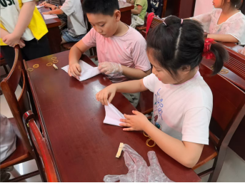 夏末的陽光仍帶著盛夏的熱情,正如濱江鎮(zhèn)雙彭村校外輔導(dǎo)站的孩子們眼里的光芒——那是躍動(dòng)的創(chuàng)造力,是探索的好奇心,更是對(duì)成長的期待。近日,濱江鎮(zhèn)民政服務(wù)站緊扣"‘濱’紛童年 ‘未’愛同行"品牌理念,聯(lián)合雙彭村為轄區(qū)兒童開展了一場沉浸式的創(chuàng)意扎染體驗(yàn)課,讓孩子們?cè)诓剂吓c染料的碰撞中觸摸傳統(tǒng)工藝的溫度。 "小朋友們知道嗎?扎染是我國非物質(zhì)文化遺產(chǎn),一塊白布通過折疊、捆扎、染色,就能變成獨(dú)一無二的藝術(shù)品!"活動(dòng)室內(nèi),志愿者手持一幅藍(lán)白相間的扎染方巾,用生動(dòng)的故事和精美的圖片,將孩子們帶入了一個(gè)色彩斑斕的傳統(tǒng)工藝世界。孩子們?cè)缫寻崔嗖蛔。娂婎I(lǐng)取棉布、橡皮筋和環(huán)保染料,開啟了自己的"創(chuàng)作之旅":有的小心翼翼地把布料折成規(guī)整的三角形,一層層纏繞橡皮筋,像在編織一個(gè)秘密;有的則天馬行空,將布料揉成不規(guī)則的球形,還調(diào)皮地說:"我要染出彩虹一樣的花紋!" 當(dāng)孩子們把扎好的布料浸入五顏六色的染料桶時(shí),教室里瞬間熱鬧起來。"我的是藍(lán)色!""我要再加一點(diǎn)紫色!"大家一邊期待著色彩的滲透,一邊小聲討論著可能的圖案。等待的過程充滿驚喜——約莫二十分鐘后,孩子們迫不及待地解開橡皮筋,緩緩展開布料。"哇!這是大海的波浪嗎?"一片藍(lán)白相間的流動(dòng)紋路,像夏日海風(fēng)輕拂過水面;"我的像一朵花!"層層暈染的紫與粉,宛如綻放的夏日繁花;還有抽象的幾何紋、不規(guī)則的色塊碰撞……每一塊布料都是獨(dú)一無二的"限量款"。孩子們舉著作品互相展示,小臉上寫滿了自豪:"我教媽媽也做一條!""下次我要試試紅色和黃色!" 這場扎染體驗(yàn),不僅讓孩子們觸摸到了非遺技藝的溫度,更在動(dòng)手實(shí)踐中培養(yǎng)了耐心與創(chuàng)造力。正如一位家長后來感慨:"孩子回家后一直念叨'我的扎染作品',還說要給奶奶也染一塊手帕——這才是真正的文化傳承。活動(dòng)結(jié)束時(shí),孩子們的手中不僅捧著各自的扎染作品,更捧著對(duì)傳統(tǒng)文化的新奇與熱愛。那些藍(lán)白交織的紋路,不僅是色彩的碰撞,更是童心與傳統(tǒng)的一次對(duì)話。未來,濱江鎮(zhèn)民政服務(wù)站將繼續(xù)以"濱紛童年 未愛同行"為引領(lǐng),開展更多寓教于樂的非遺體驗(yàn)活動(dòng),讓孩子們?cè)谕嬷袑W(xué)、在學(xué)中悟,讓傳統(tǒng)文化的種子在幼小的心靈里生根發(fā)芽 |