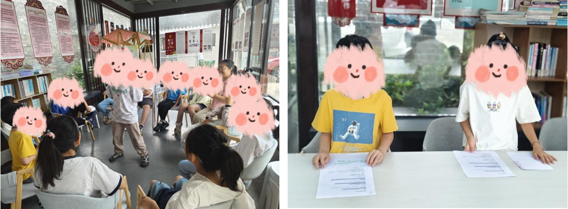 “擊鼓傳花”游戲中引入網(wǎng)絡(luò)安全快問快答;角色扮演環(huán)節(jié),兒童對(duì)昵稱“超級(jí)小明”的哄笑聲,反映出隱私邊界意識(shí)的萌芽;“就不這樣做”反向指令游戲訓(xùn)練兒童的應(yīng)變能力,激活了兒童參與熱情。工作人員結(jié)合“網(wǎng)絡(luò)安全小偵探”案例推演,引導(dǎo)組員對(duì)網(wǎng)絡(luò)詐騙問題進(jìn)行討論回答,結(jié)合網(wǎng)絡(luò)安全主題貼紙的獎(jiǎng)勵(lì),提高兒童防詐騙識(shí)別準(zhǔn)確率。 三、社會(huì)化情景,賦能深度認(rèn)知