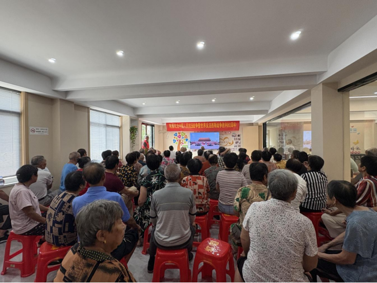 為弘揚愛國主義精神,厚植家國情懷,9月3日上午9時,虹橋鎮(zhèn)虹德社區(qū)“七彩虹德”志愿服務隊在一老一小關愛服務中心老年活動室舉辦“觀閱兵·憶崢嶸”主題活動,邀請社區(qū)老黨員、老退役軍人集中觀看中國人民抗日戰(zhàn)爭暨世界反法西斯戰(zhàn)爭勝利80周年閱兵儀式直播。活動以“紅色記憶”為紐帶,通過沉浸式觀影與互動交流,凝聚社區(qū)治理正能量。 貼心服務暖人心,志愿護航顯溫情。 活動前期,“七彩虹德”志愿服務隊精心籌備,20余名志愿者分工協(xié)作:有的布置觀影場地,分發(fā)小國旗營造莊嚴氛圍;有的調(diào)試設備確保直播流暢;還有的為老人們準備了熱茶、糕點等。針對部分行動不便的老黨員,志愿者主動上門接送,用“一對一”服務傳遞關懷。退役軍人張叔叔感慨道:“從接到邀請到活動現(xiàn)場,每一步都安排得細致周到,讓我們感受到社區(qū)大家庭的溫暖” 崢嶸歲月入光影,家國情懷蕩心間。 當雄壯的國歌響起,閱兵儀式正式開始。徒步方隊、裝備方隊、空中梯隊依次通過天安門廣場,展現(xiàn)了我軍現(xiàn)代化建設的磅礴力量。觀影過程中,居民們心情澎湃,感受著祖國的強大。88歲的老兵李爺爺動情地說:“當年我們用小米加步槍保家衛(wèi)國,如今看到祖國強大的國防力量,倍感欣慰!這些年輕戰(zhàn)士的精氣神,就是國家未來的希望!” 志愿服務創(chuàng)品牌,社區(qū)治理繪新景。 此次活動是虹德社區(qū)“七彩虹德”志愿服務隊“關愛一老一小”項目的延伸實踐。近年來,社區(qū)以新時代文明實踐站為陣地,通過“銀齡互助隊”“老兵宣講團”等特色隊伍,常態(tài)化開展健康義診、紅色研學等活動,累計服務超1.2萬人次。社區(qū)黨總支書記表示:“我們將繼續(xù)以志愿服務為載體,搭建代際互動平臺,讓紅色基因融入社區(qū)治理,激發(fā)共建共治共享的內(nèi)生動力。” 未來,虹德社區(qū)將持續(xù)深化“黨建+志愿服務”模式,以“七彩虹德”品牌為引領,推動志愿服務從“溫暖小事”向“長效善治”升級,為構(gòu)建和諧社區(qū)注入不竭動力。 |
