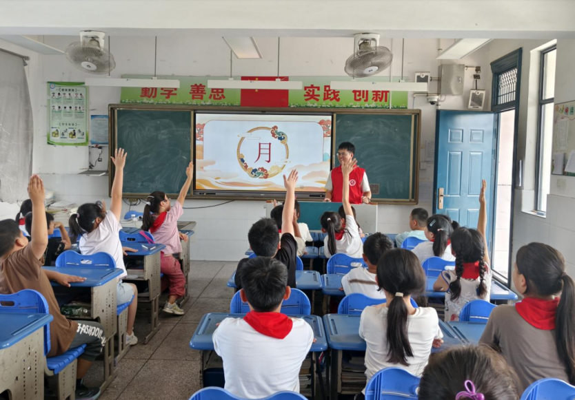 飛花令里品詩韻,少年才情競芳華。廣陵小學的教室里,同心圓夢志愿者正帶領孩子們開展“月滿中秋·詩詞飛花令”活動。“小時不識月,呼作白玉盤”“窗前明月光,疑是地上霜”“月落烏啼霜滿天,江楓漁火對愁眠”……孩子們爭相舉手搶答,一句句經典詩詞脫口而出,現場掌聲不斷。志愿者們?yōu)榇饘Φ膶W生送上印有中秋圖案的精美書簽,鼓勵他們多讀經典、傳承文化。倪榮輝同學興奮地說:“以前只覺得月亮是圓的,今天學了這么多‘月’的詩句,才發(fā)現月亮里有這么多故事!”活動以詩為媒,讓孩子們在競技中感受詩詞之美,厚植文化自信。