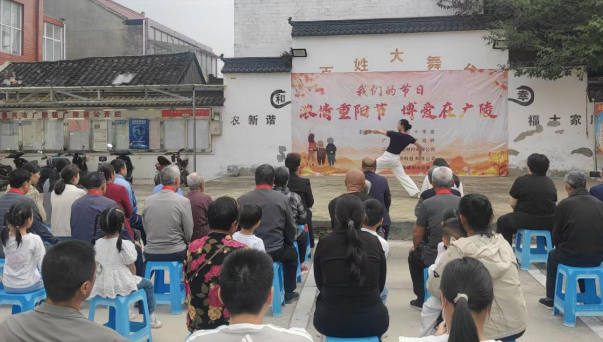 重陽節(jié)來臨之際,廣陵鎮(zhèn)宣傳科聯(lián)合泰興市紅十字會(huì)、鎮(zhèn)中心幼兒園、鎮(zhèn)衛(wèi)生院、新聯(lián)會(huì)、鎮(zhèn)區(qū)部分企業(yè)等多部門多單位,共同開展了一場的重陽節(jié)表演慰問活動(dòng),為鎮(zhèn)內(nèi)老年人送去節(jié)日祝福與關(guān)懷,弘揚(yáng)尊老敬老的傳統(tǒng)美德。