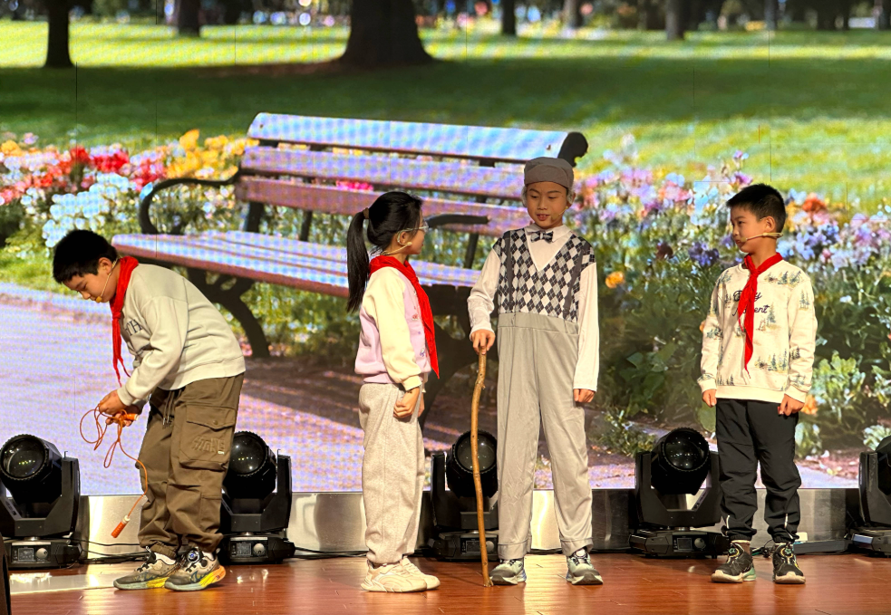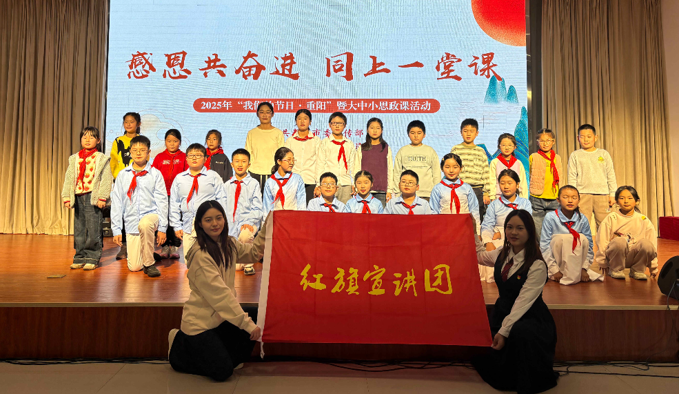 孝行當(dāng)下,情感升華凝聚共識。現(xiàn)場播放的“社區(qū)尋訪”VCR,真實記錄了學(xué)生們拜訪退役老兵雍德元的動人場景。鏡頭下,老兵深情講述革命歲月,回憶往昔崢嶸,為學(xué)生們上了一堂感人至深的沉浸式愛國主義教育課。懷著這份敬意,泰興市張橋小學(xué)的學(xué)生們莊嚴宣讀《孝心行動倡議書》,號召全體同學(xué)以實際行動踐行責(zé)任擔(dān)當(dāng),在“認知—認同—踐行”的閉環(huán)中實現(xiàn)自我教育。“九九重陽,自古寄托著對生命久長、福壽安康的美好祝愿,現(xiàn)在更成為我們感恩尊老、賡續(xù)文脈的精神紐帶,我們應(yīng)該將感動化為行動,用實踐詮釋孝心。”主持人鞠詩睿鏗鏘有力地說。