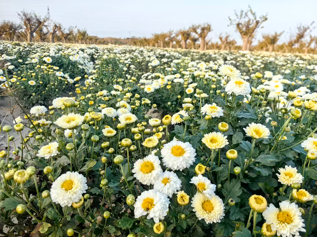 當(dāng)前,聯(lián)新村百畝泡茶專用千層菊正迎來豐收季,小雛菊、杭白菊、桃菊等品種也即將進(jìn)入盛花期。村民們穿梭于花海間采收菊花,一派繁忙景象。近年來,當(dāng)?shù)胤N植戶創(chuàng)新思路,嘗試在銀杏林下套種菊花,探索出“銀杏+菊花”的立體農(nóng)業(yè)新模式。 “菊花收了之后,我們會把它的其他部分粉碎,用于改良土壤、作為肥料,這對銀杏樹有一定幫助。同時(shí),銀杏樹樹葉有一定殺蟲作用,能幫助菊花殺掉表面的蟲子。現(xiàn)在正是菊花的開花期,今年長勢很好,預(yù)計(jì)半個月之后進(jìn)行烘干、包裝、上市。”宣堡鎮(zhèn)聯(lián)新村工作人員封洪偉介紹道。