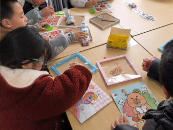 創(chuàng)作環(huán)節(jié)正式開啟,現(xiàn)場瞬間變成了充滿創(chuàng)意的“小工坊”。孩子們領(lǐng)取材料包后,專注地投入創(chuàng)作,小眉頭微微皺起,小手小心翼翼地拿起鑷子夾起水鉆,精準(zhǔn)地粘貼在底板上。遇到粘貼不牢固、位置對不準(zhǔn)的問題時(shí),他們主動(dòng)向工作人員求助,在耐心指導(dǎo)下逐步掌握技巧。一顆顆閃耀的水鉆在孩子們的巧手下,逐漸拼湊出吉祥的福字、靈動(dòng)的小馬、喜慶的財(cái)神爺,每一件作品都充滿童真童趣,承載著孩子們對新年的純真祝福。