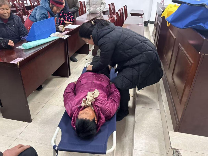 兼顧健康與溫情,多維服務(wù)傳遞滿滿關(guān)愛。除了專業(yè)的照護(hù)技能培訓(xùn),活動(dòng)還設(shè)置了貼心的醫(yī)護(hù)服務(wù)環(huán)節(jié)。醫(yī)護(hù)人員圍繞老年群體高發(fā)的關(guān)節(jié)疼痛、睡眠障礙、高血壓、糖尿病等健康問題開展科普宣講,用通俗易懂的語言講解疾病預(yù)防、日常養(yǎng)護(hù)知識(shí),并現(xiàn)場(chǎng)發(fā)放健康宣傳手冊(cè)。針對(duì)老人們提出的用藥咨詢、康復(fù)護(hù)理等疑問,醫(yī)護(hù)人員逐一細(xì)致解答,提供個(gè)性化健康指導(dǎo)。對(duì)于現(xiàn)場(chǎng)排查出身體狀況較差的老人,醫(yī)護(hù)人員認(rèn)真做好信息記錄,詳細(xì)告知家屬注意事項(xiàng),提醒及時(shí)就醫(yī)檢查,形成“培訓(xùn)+義診+健康追蹤”的閉環(huán)服務(wù)模式,讓健康關(guān)懷不留死角。