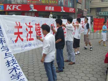南京航空航天大學信息科學與技術學院暑期社會實踐[關愛生命,共建和諧]小分隊一行八人來到我市市區,他們利用發放傳單和調查問卷的形式向廣大市民宣傳癌癥和艾滋病等其他疾病的預防知識,受到眾多市民的關注和參與。