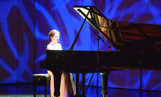 “少小離家,求學(xué)京滬,一路追尋音樂(lè)之夢(mèng)想。今日返鄉(xiāng),以肖邦經(jīng)典匯報(bào)鄉(xiāng)梓父老,以樂(lè)表琴心一片。”長(zhǎng)達(dá)2個(gè)小時(shí)的演出,朱瞳瞳技驚四座:手指在黑白琴鍵上不斷地跳躍,唯美的琴聲從指尖傾瀉而下,她似乎將觀眾帶到了肖邦那個(gè)時(shí)代,盡情訴說(shuō)著關(guān)于愛(ài)情與人生的故事。演奏的過(guò)程中,篇章之間的轉(zhuǎn)換非常流暢,觀眾也頗具音樂(lè)素養(yǎng),總會(huì)在合適的地方報(bào)以熱烈的掌聲。此次音樂(lè)會(huì),不僅是朱曈曈在家鄉(xiāng)第一次舉辦個(gè)人音樂(lè)會(huì),更是她與“音樂(lè)詩(shī)人”肖邦無(wú)限靠近的指尖之旅,無(wú)數(shù)人碰觸過(guò)的經(jīng)典,都從這位未來(lái)的“鋼琴皇后”手指下流淌,呈現(xiàn)出不一樣的解讀與詮釋。