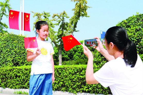 ![]() 中秋假期期間,許多家長紛紛帶著孩子來到“國旗街”和國旗合影拍攝點(diǎn),與國旗同框,定格最自豪的瞬間。
