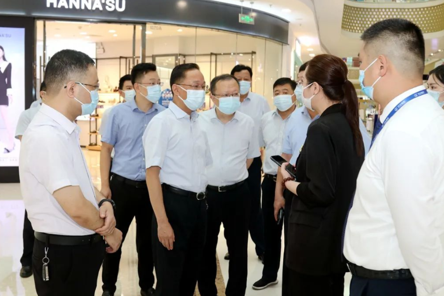 在萬達廣場,張坤詳細了解測溫、掃碼、戴口罩等疫情防控措施落實情況,并隨機抽查商場工作人員核酸檢測情況。