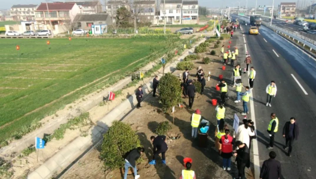 最是一年春好處,植樹添綠正當時。3月10日,市委書記張坤、市長劉文榮等市四套班子負責人來到232省道泰興段二期綠化工程現場,與廣大干部群眾一起義務植樹,攜手為建設美麗泰興再添新綠。 春風拂面,新綠初綻。張坤、劉文榮等來到植樹點,揮鍬鏟土、培土圍堰、提水澆灌,道道工序做得認真細致,合力栽下一株株紅葉石楠球、桂花、香樟等,將232省道裝點得更加生機盎然。 張坤邊植樹邊詢問樹種特點、生長周期、日常養護等情況,叮囑有關部門要做好后續管護,鞏固擴大植樹造林成果,更好地發揮生態效應和景觀效應。 232省道泰興段是我市中部地區的一條主要的南北道路,是沿線各鄉鎮的通達之路、致富之路、幸福之路。 二期綠化工程設計采用3組苗木組合交替種植,結合苗木造型與色彩特點,搭配常綠與落葉植物,保證四季景觀鮮明有特色,造型別致有格調。 |
