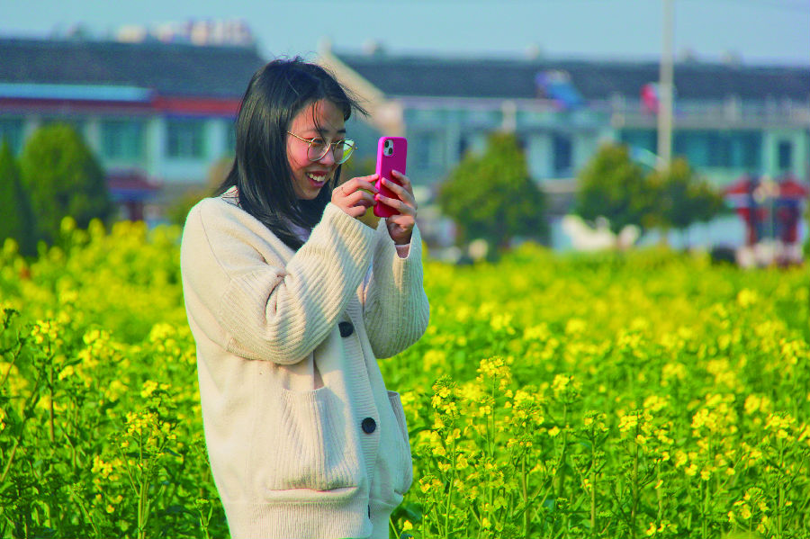 廣陵鎮北肖村油菜花盛開 金色花海醉游人