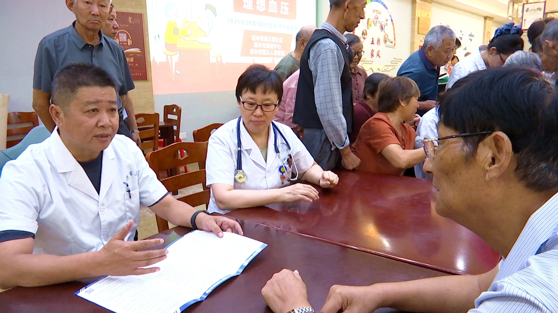 活動現場,醫務人員耐心傾聽居民訴求,對大家提出的高血壓相關問題給予認真詳細的解答,為居民提供專業健康指導。