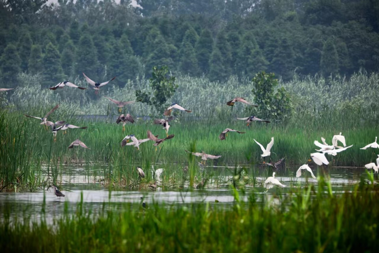 - 2024-10-14 23:26:12 · 奮進強國路 闊步新征程 | 泰州姜堰:溱湖濕地——草木葳蕤候鳥鳴金秋十月,溱湖濕地呈現(xiàn)出多樣的生物、多彩的空間,活脫脫像一幅鳥鳴波漾的水墨畫。微風吹過,水波蕩漾,湖面上泛著柔光,岸邊草木葳蕤,時不時有鳥兒從草叢中飛出,或湖面盤旋,或草中覓食。 溱湖濕地內的湖泊、河流等占景區(qū)總面積的37%左右,湛藍的湖泊、交織